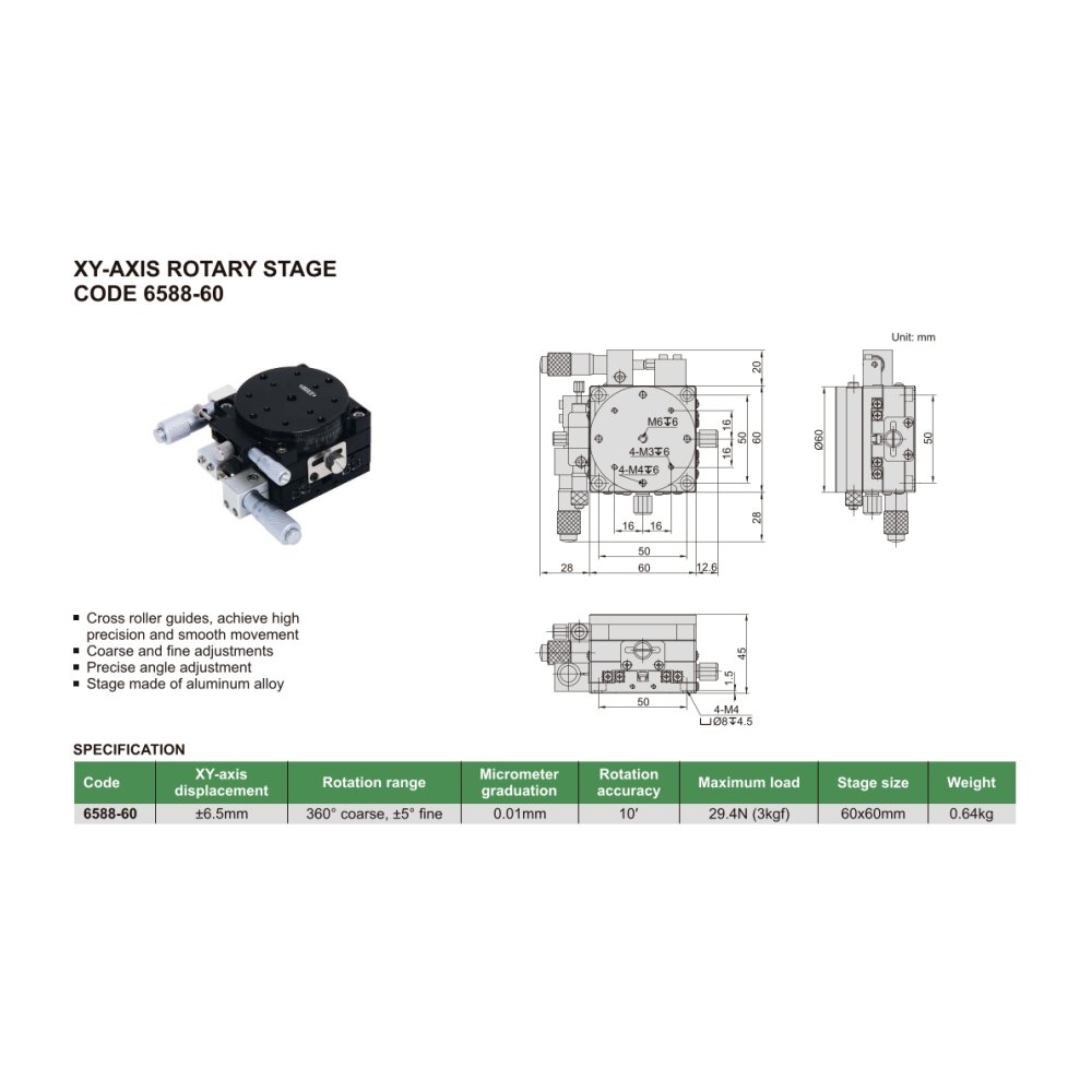 XY-Zweiachsen Linearpositionier- und Drehtisch – 360°grob – 60x60mm – +/- 6.5mm