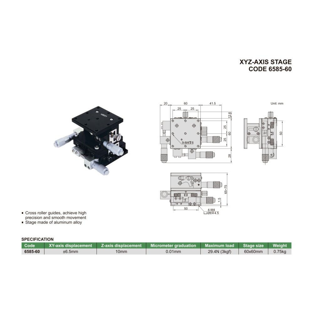 XYZ-Dreiachsen Linearpositioniertisch – 60x60mm – +/- 6.5mm