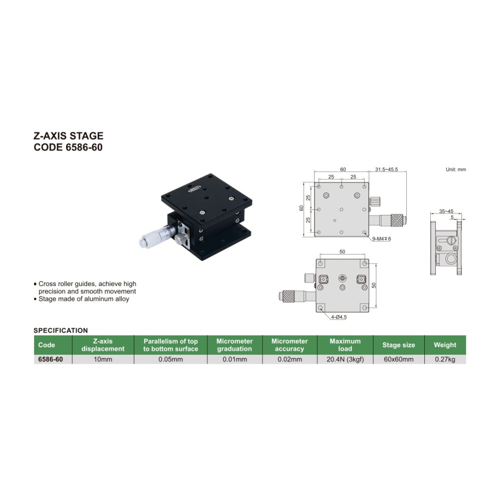 Lineartisch mit Gleitlagerung und manueller Spindelverstellung als Objektträger